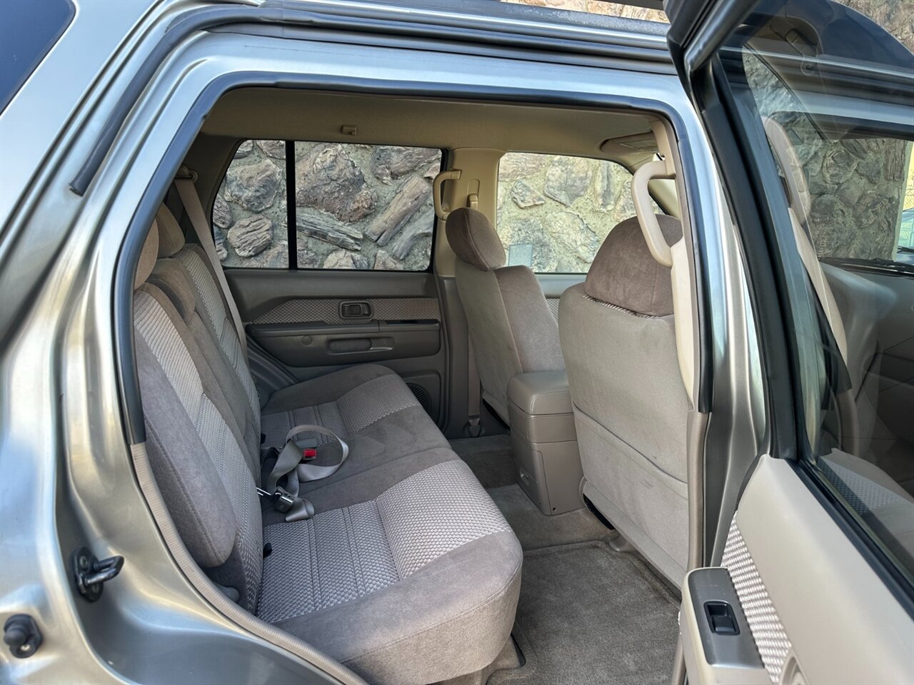 Looking for a dependable, well-equipped SUV with low miles and a comfortable ride? This 2004 Nissan Pathfinder SE in sleek gray with a warm tan interior is a great find — excellent overall condition and under 133,000 miles (averaging less than 6,000 miles per year). Factory features you’ll appreciate - Engine & drivetrain: The SE came from the factory with Nissan’s smooth V6 paired to an automatic transmission for confident passing and highway cruising. Many SE models are equipped with a selectable 4WD system (shift-on-the-fly style) and a low-range transfer setting for added traction and light off-road capability, making it versatile for all-season driving and towing chores. - Comfort & seating: SE trim was furnished for comfort — leather-appointed front seats with power adjustment for the driver, heated front seats for cold mornings, and a roomy tan interior that’s easy to keep looking great. The rear seat offers a 60/40 split-fold design to increase cargo flexibility. - Exterior & utility: Factory alloy wheels, roof rails for cargo carriers or roof boxes, and fog lights are standard SE appointments. The Pathfinder’s boxy, capable profile gives you plenty of cargo space and the available tow package and hitch receiver factory provisions make towing simple. - Convenience & electronics: Power windows and door locks, remote keyless entry, cruise control, and power mirrors are all factory-equipped for everyday ease. The original audio system includes an AM/FM radio with CD capability and an intuitive layout for quick use on the go. - Climate & climate control: A full HVAC system with cold-blowing air conditioning and easy-to-use controls keeps the cabin comfortable for passengers in all seasons. - Safety: Factory safety features include front airbags, side-impact airbags for front occupants (commonly fitted on SE models), and an anti-lock braking system (ABS) to help maintain control under hard braking. The Pathfinder’s robust truck-based platform contributes to a solid feeling on the road. Why this one stands out - Attractive two-tone presentation: gray exterior paired with a tan interior creates a timeless look that’s both practical and inviting. - Low ownership miles: under 133,000 miles total, averaging less than 6,000 miles per year — that’s light use for a vehicle of this age. - Excellent overall condition: carefully cared-for inside and out, this Pathfinder is ready for daily driving, weekend adventures, or to be a reliable family hauler. If you’d like more specifics about service history, factory options on this particular vehicle, or to schedule a time to see it in person, we’re happy to help — this is a solid example of a well-kept 2004 Pathfinder SE.