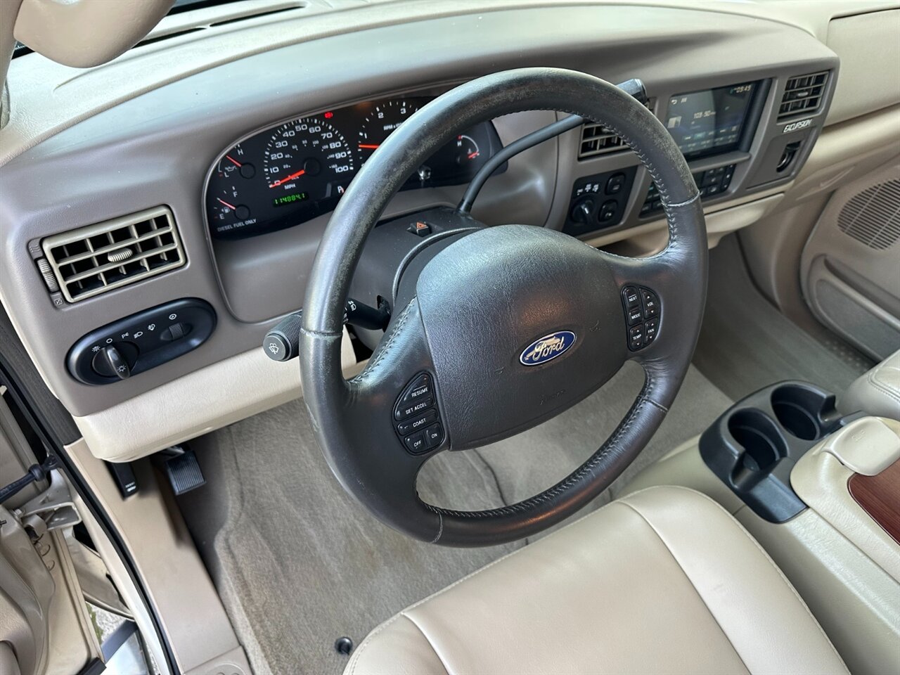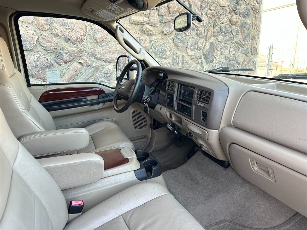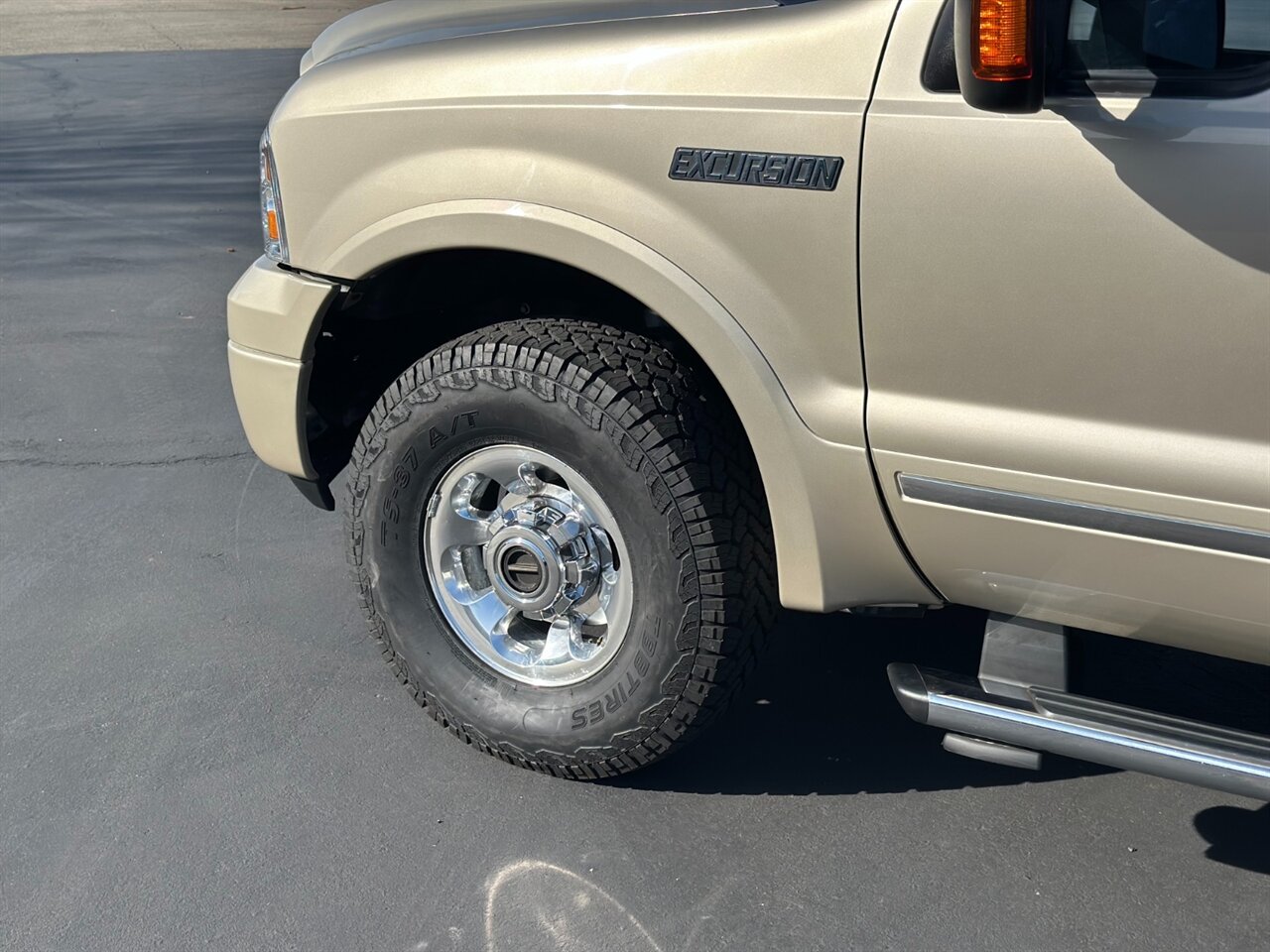 Behold a monumental piece of American engineering and luxury — a 2005 Ford Excursion 6.0L Power Stroke 4x4 LIMITED, “BULLET PROOFED,” finished in commanding Pueblo Gold Clearcoat Metallic with a refined Medium Pebble interior. This is more than an SUV — it’s a rolling statement of capability, comfort, and confidence. Power & Reliability - Powered by the legendary Power Stroke 6.0L Turbocharged Diesel V8 (OHV 32V, FI) producing a commanding 325 hp and a thunderous 560 ft-lbs of torque. Paired to a stout 5-speed automatic transmission, this combination delivers effortless highway cruising, superb low-end torque for towing, and long-haul durability. - Professionally “BULLET PROOFED” to address known weak points on the 6.0L platform — giving you enhanced dependability and peace of mind for years of heavy-duty service. Exterior & Presence - Pueblo Gold Clearcoat Metallic paint that gleams with a deep, glossy finish and shows no rust. The exterior presents in excellent overall condition, fully detailed and show-ready. - Rugged 4x4 capability with factory 4-wheel drive hardware and heavy-duty underpinnings that make this Excursion equally at home on the jobsite or on a cross-country expedition. - Convenient factory side steps included for easy entry and exit. Luxurious Limited Trim — Factory Features in Detail - Seating & Comfort: Premium Medium Pebble leather-trimmed interior with supportive, well-cushioned seats designed for long-distance comfort. Roomy three-row cabin tailored for family or crew, with a focus on quiet refinement and ergonomics. - Climate & Convenience: Dual-zone automatic climate control to keep driver and passengers comfortable no matter the weather. Power windows, power door locks, and power mirrors bring modern convenience to this full-size SUV. - Driver Controls: Tilt steering and cruise control for effortless highway driving and reduced fatigue on long hauls. - Power & Entry: Remote keyless entry and factory power-adjustable seating for quick, easy personalization of your driving position. - Audio & Connectivity: AM/FM radio provides dependable entertainment and clear sound; factory audio layout designed for effective cabin distribution. - Safety & Chassis: Heavy-duty ABS brakes and a suite of factory safety systems engineered for the class — thoughtful crash protection and chassis stability designed into the vehicle from day one. - Utility & Towing: Built on a heavy-duty frame with factory provisions for towing and hauling; sturdy suspension and drivetrain components designed for demanding tasks and long service life. Optional & Notable Equipment Included - AM/FM Radio — factory-installed and integrated for reliable listening. - Side Steps — for easy access to the lofty cabin. - 5-Speed Automatic Transmission — smooth, rugged shifting tuned for towing and highway stability. - The featured 6.0L Turbocharged Diesel V8 OHV 32V FI engine — factory-installed powerhouse. Condition & History - Exceptionally low mileage for its year — below 114,000 miles total, averaging under 6,000 miles per year. - Excellent overall condition: glossy, well-preserved paint, no rust, and a complete professional detail inside and out. - This Excursio