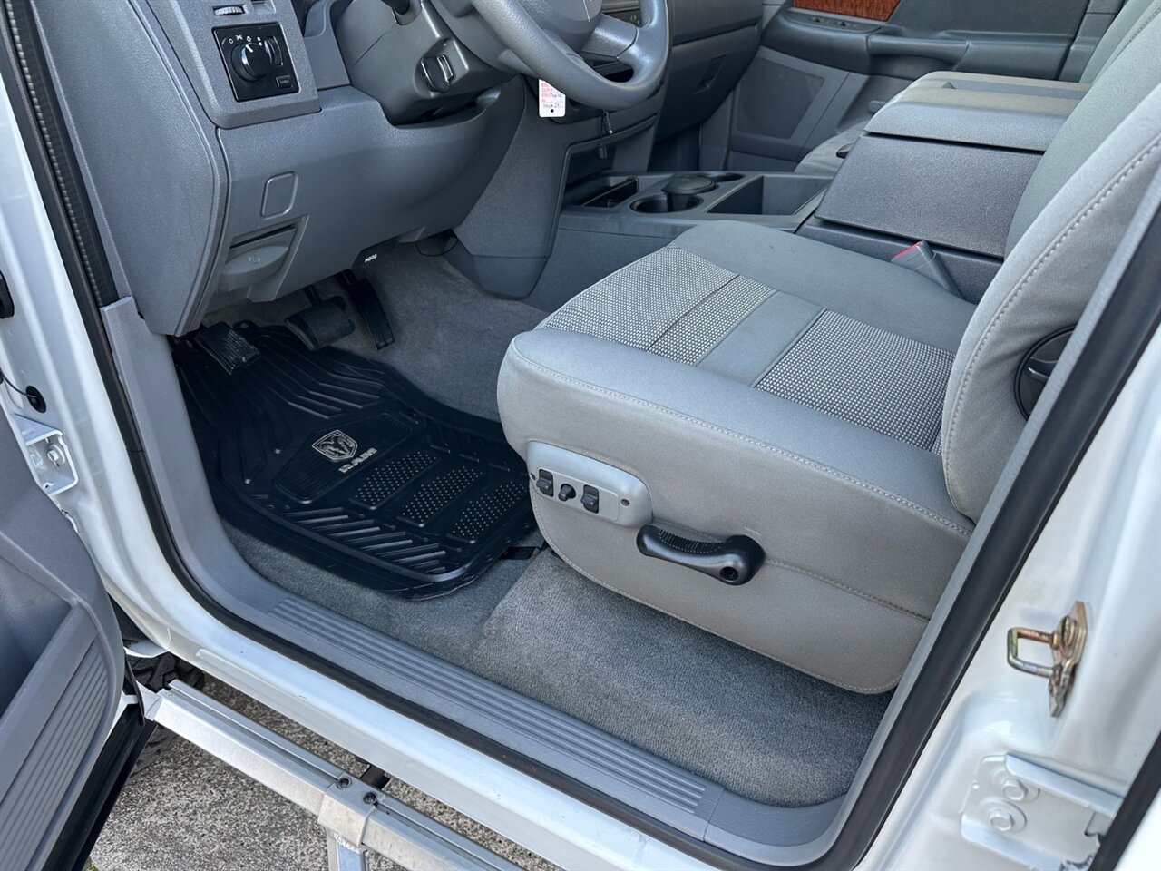 This is the real deal — a one-owner 2006 Dodge Ram 2500 MEGA CAB 4x4 with the legendary 5.9L Cummins Turbo Diesel and unbelievably low miles (under 104,000 — averaging less than 5,000 miles per year). Bright White Clearcoat exterior, gray interior, glossy paint, zero rust, fully detailed and ready to work. If you want a heavy-duty diesel that looks and drives like it just rolled off the lot, stop wasting time. Vehicle highlights - One-owner, low-mileage 5.9L Turbocharged Cummins I6 (OHV, 24V, fuel-injected) — known for torque, longevity and bulletproof reliability. - Mega Cab: massive rear passenger room with full-size rear doors and ultra-generous legroom and storage — ideal for crews, family or gear. - Four-wheel drive with low-range capability for serious off-road, towing and worksite performance. - Clean Bright White Clearcoat exterior, glossy finish, no rust. Gray interior in excellent condition and fully detailed. Factory-default features (detailed) - Heavy-duty diesel powertrain: the 5.9L Cummins inline-6 turbocharged diesel delivers big low-end torque for towing and hauling, coupled to a durable 4-speed automatic engineered for diesel torque handling. - Rugged chassis and suspension: built on a stout frame with heavy-duty springs and shock tuning to handle payloads and towing chores while maintaining highway composure. - Brake and safety package: four-wheel anti-lock braking for confident stops under load, dual front airbags and proven Dodge safety engineering for its class. - Mega Cab interior: large, comfortable seating area with thought-out storage — rear seats fold to reveal massive under-seat storage and a cavernous passenger compartment for tools, gear or crew. - Convenience and comfort: factory air conditioning, tilt steering, cruise control, power windows and locks, and an easy-to-read instrument cluster tailored for work duty. - Factory audio: AM/FM/CD system and well-placed speakers for clear sound on long hauls. Included optional equipment - Keyless Entry System - Bed Liner (durable protection for the cargo area) - 4-Speed Automatic Transmission (diesel-rated) - 5.9L Turbocharged Diesel I6 OHV 24V FI Engine - Power Driver Seat - Premium Cloth Seats (upgraded comfort and durability) - 17-inch Alloy Wheels (factory alloys for strength and looks) This Ram is clean, tight and ready to be put to work — or simply enjoyed as a dependable, low-mileage diesel that holds value. Don’t let it slip away. Contact us now to schedule a test drive and see why this 2006 Ram 2500 MEGA CAB 4x4 still dominates the competition.