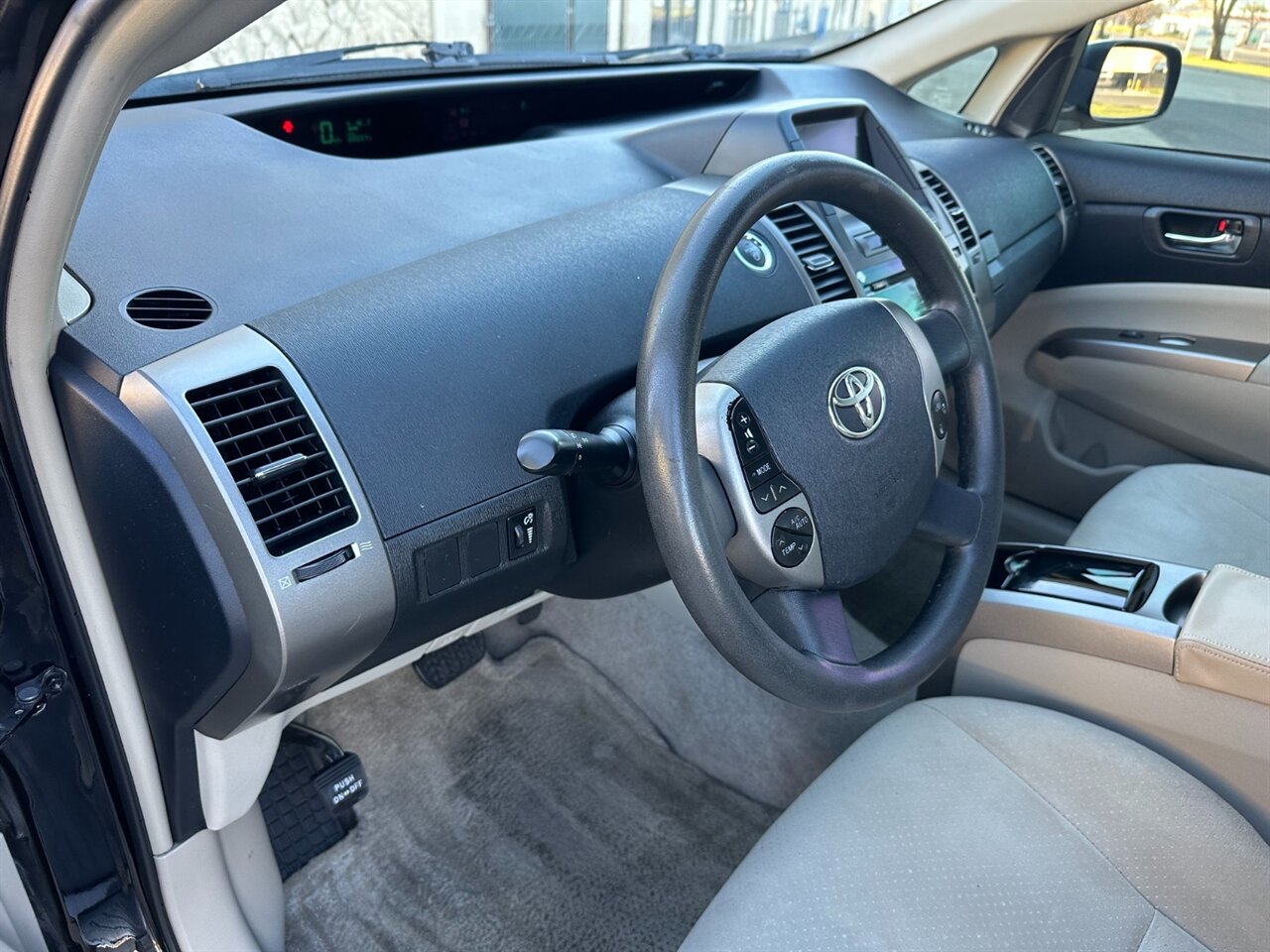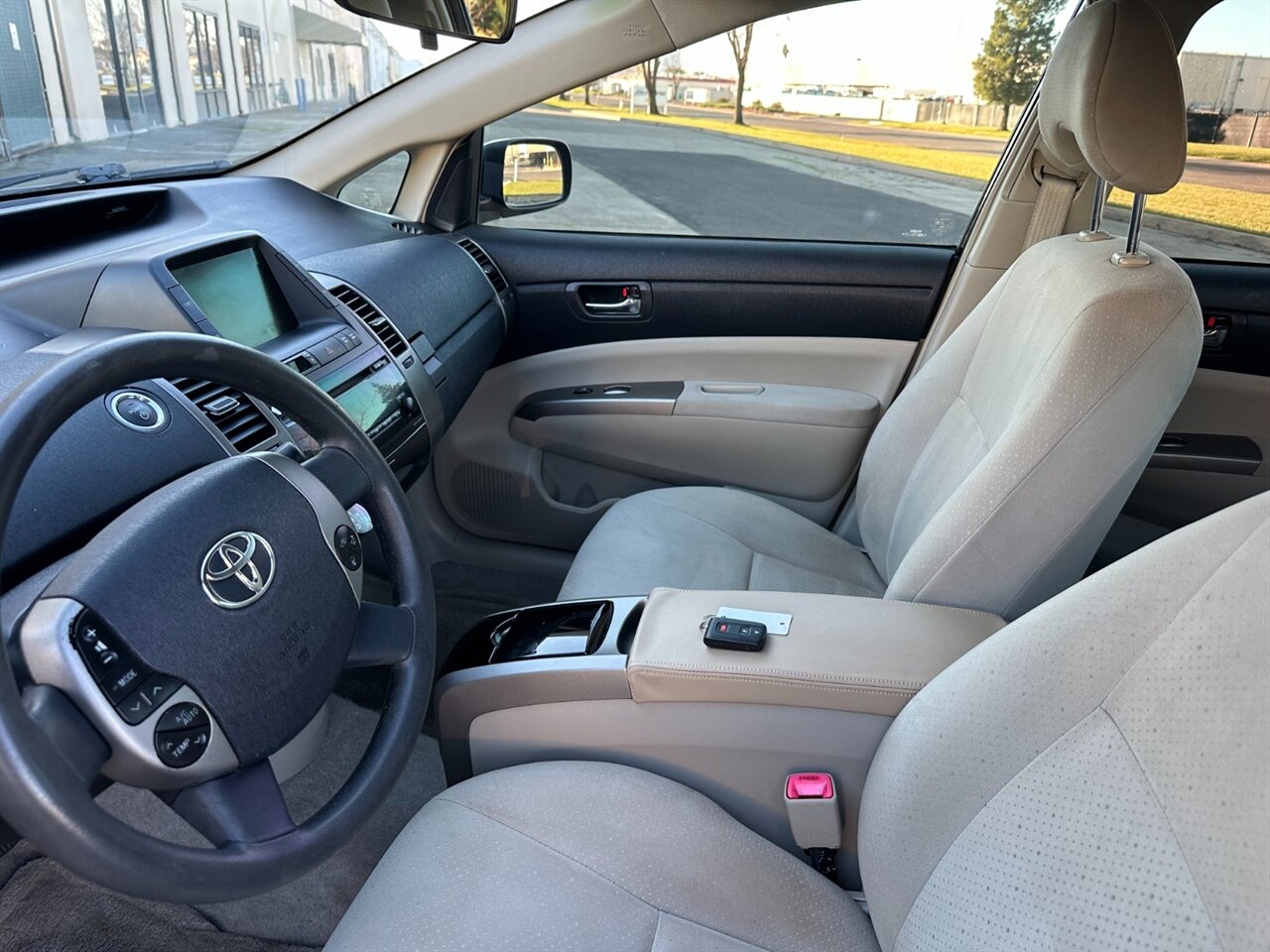 2008 Toyota Prius Standard — LOW MILES, ONE OWNER. Powered by the 1.5L Hybrid I4 (76 hp, 82 lb-ft) with smooth CVT Hybrid Synergy Drive — real-world 48 MPG city / 45 MPG highway. Factory features include automatic climate control, AM/FM/CD stereo with auxiliary input and multi-information digital display, cruise control, tilt steering, power windows/locks and mirrors, remote keyless entry, cloth Bisque upholstery with 60/40 split-fold rear seats, 15" wheel covers, ABS with EBD, traction control/VSC, front/side and curtain airbags, tire pressure monitor, rear defogger and intermittent wipers. Extras: Carpet Floor/Cargo Mat Set and Cargo Net included. Black exterior, Bisque interior, under 88,000 miles (avg <5k/yr), glossy paint, no rust, fully detailed, one non-smoker owner. Don’t hesitate — this clean, ultra-efficient Prius won’t wait.